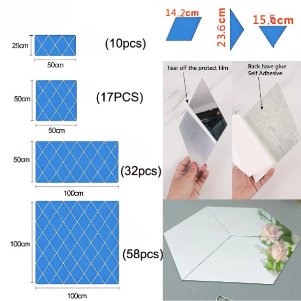 Materiale: Specchio acrilico con pellicola protettiva (da rimuovere prima dell’uso).