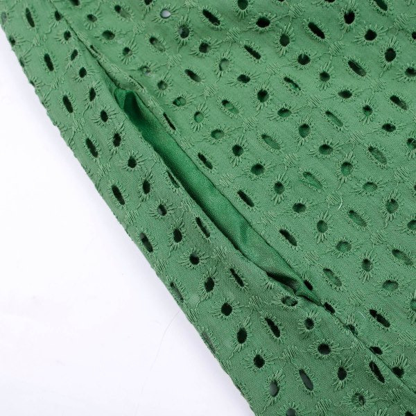 Abbinate questo abito a tacchi alti per un look elegante o a sandali per uno stile casual e rilassato. I giocosi occhielli e i piccoli dettagli pom aggiungono un tocco divertente e spensierato all’abito, rendendolo adatto a una varietà di look. È perfetto da accessoriare con occhiali da sole e cappello per un’atmosfera estiva.