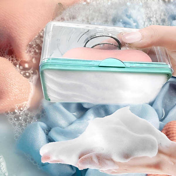 Dotato di un’asta dentellata, non solo aiuta a pulire i vestiti, ma offre anche una delicata esfoliazione e un massaggio quando viene usato sulla pelle. È sufficiente inserire un sapone delicato nel contenitore per ottenere un effetto extra di massaggio e peeling. Questo aiuta a rimuovere le cellule morte della pelle e a migliorare la circolazione sanguigna, offrendo una maggiore versatilità.