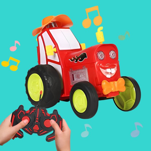 JUMPICAR non è un trattore qualsiasi. Può saltare in avanti e all’indietro, eseguire salti mortali e persino stare in piedi mentre salta. Queste divertenti azioni fanno sembrare il trattore vivo e pieno di energia, facendo sì che il bambino si impegni mentre lo guarda eseguire i suoi trucchi.