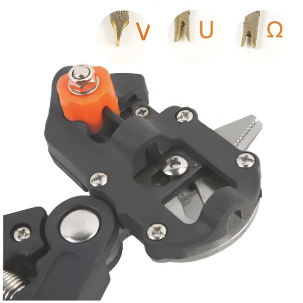 Questo strumento dispone di 3 lame sostituibili (V, U, Ω) che consentono di eseguire diversi tipi di tagli, rendendolo perfetto per varie attività di potatura e innesto.
