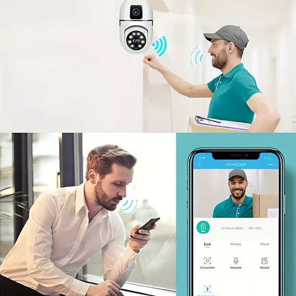 Con l’altoparlante interfono di BULBCAM, potete parlare direttamente attraverso il cellulare con chiunque si trovi fuori dalla porta. Potete anche dare istruzioni al personale addetto alle consegne o persino guidare gli ospiti se siete impegnati o lontani, rendendo più facile gestire i visitatori da qualsiasi luogo.