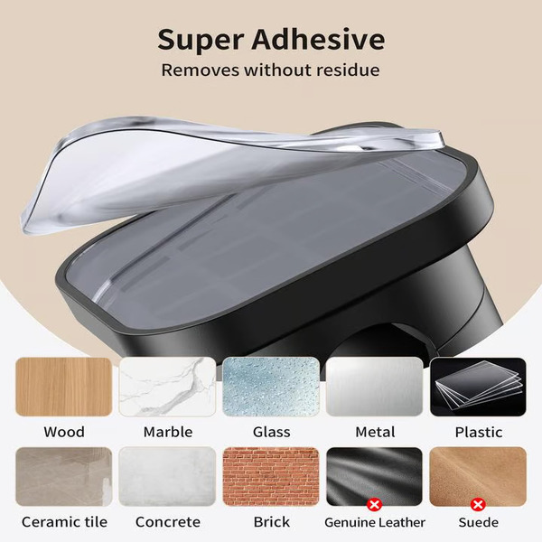 Si fissa saldamente a superfici piane come legno, piastrelle, metallo e pareti lisce.