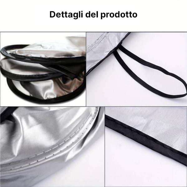 Assicura che l’interno dell’auto rimanga più fresco proteggendo il cruscotto, i sedili e il volante dai raggi del sole.