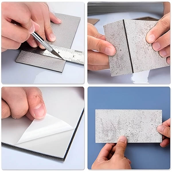 4. Incollare alla parete: Premere con forza la piastrella su una superficie pulita e liscia.