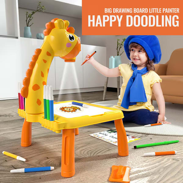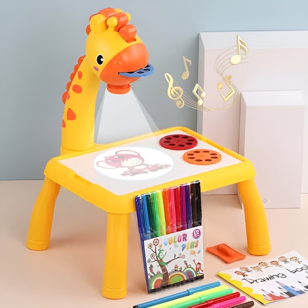 Un proiettore colorato a tema giraffa, progettato per attirare l’attenzione e divertire i bambini, favorendo lo sviluppo motorio e cognitivo.