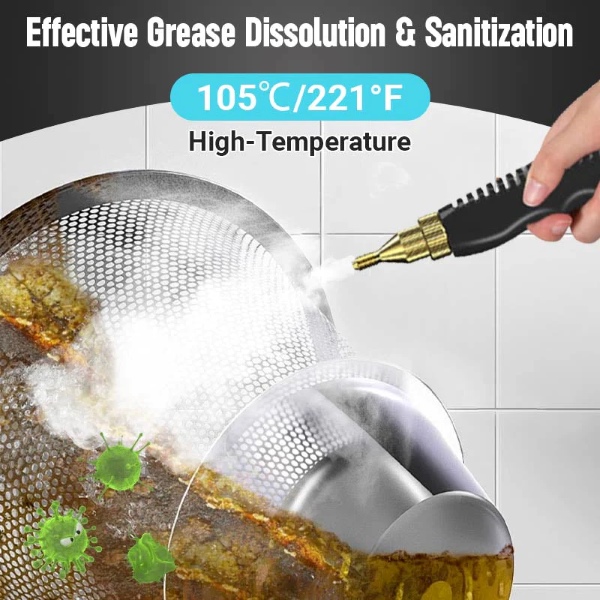 Ideale per la pulizia di cappe aspiranti, pentole da cucina, frigoriferi, unità di condizionamento, auto, bagni, cucine e molto altro con una pressione del vapore di 3BAR.