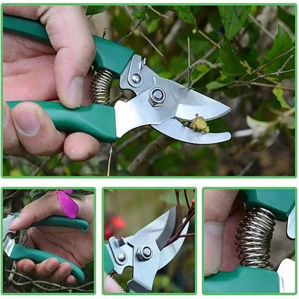 Affrontate i rami cresciuti come un professionista! Il set comprende anche forbici da potatura di alta qualità che possono tagliare rami fino a 12 mm di spessore. Il design a lama curva assicura una potatura precisa ed efficiente.