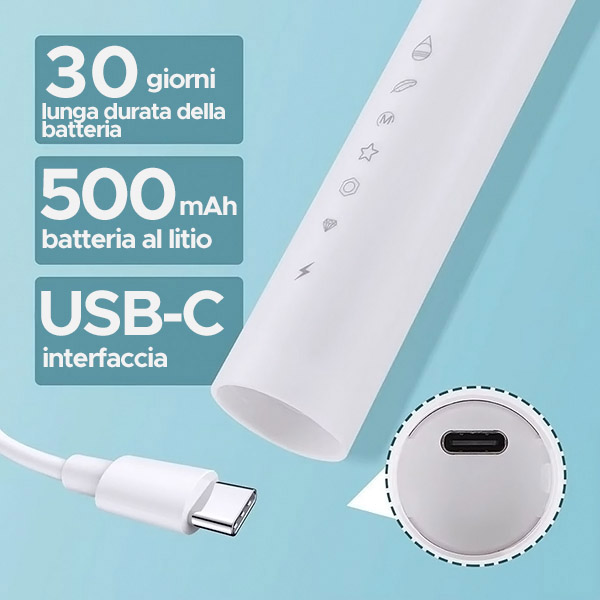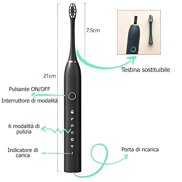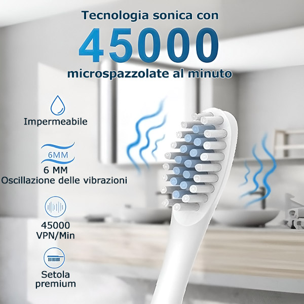 🦷 Possibilità di acquistare testine di ricambio per un uso più duraturo e un’igiene completa!