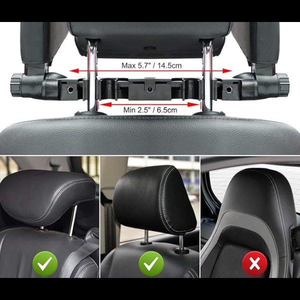 Compatibilità: Adatto ai sedili dell’auto con poggiatesta separati e con una distanza tra gli schienali di 7-16 cm. Non adatto ai poggiatesta fissi.